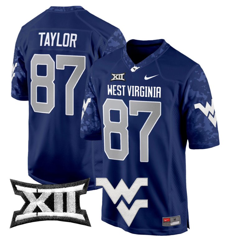 Kole Taylor Jersey #87 West Virginia Mountaineers Game Football Navy