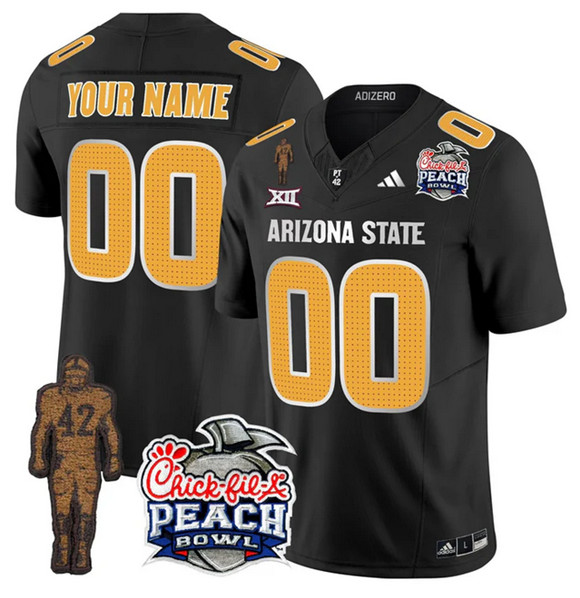 Men’s Arizona State Sun Devils Active Player Custom Black 2025 F.U.S.E. Pat Tillman & Peach Bowl Patch Vapor Limited Stitched Jersey