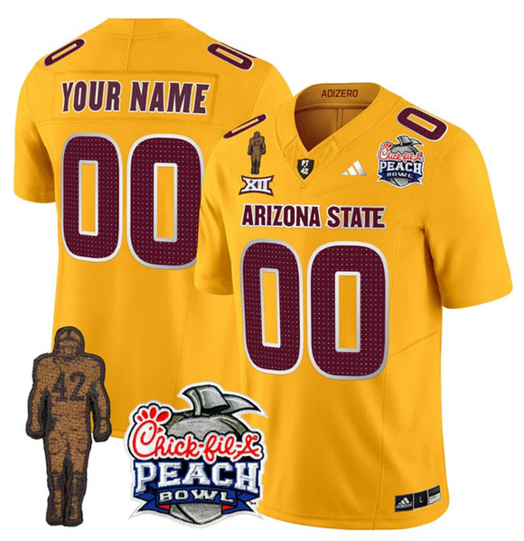 Men’s Arizona State Sun Devils Active Player Gold 2025 F.U.S.E. Pat Tillman & Peach Bowl Patch Vapor Limited Stitched Jersey