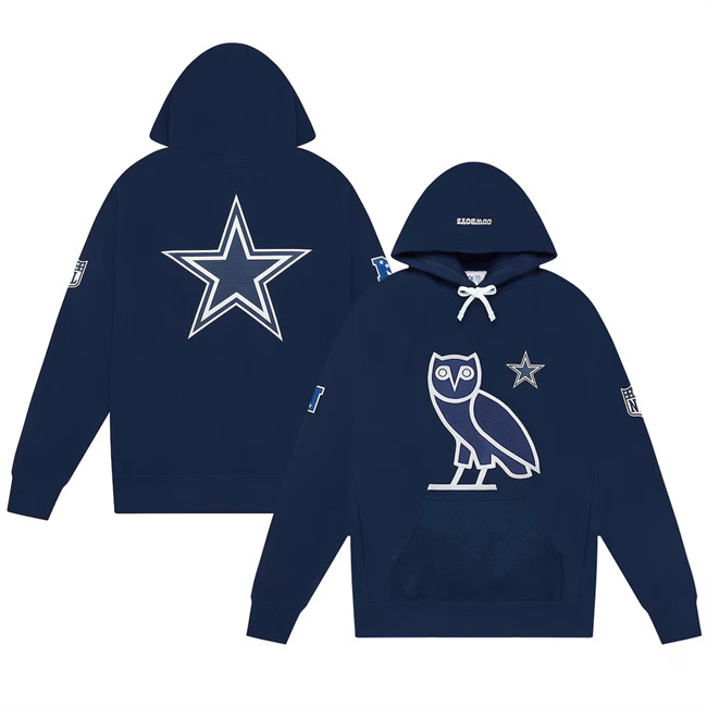 Men’s Dallas Cowboys Navy OVO Scarlet Icon Team Pullover Hoodie