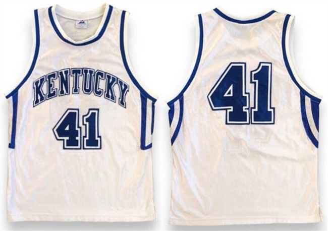 Men’s Kentucky Wildcats #41 Mark Pope White Stitched Basketball Jersey