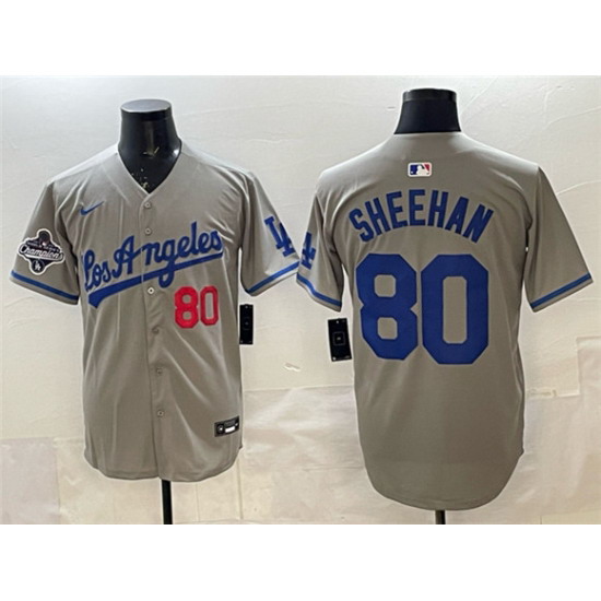 Men’s Los Angeles Dodgers #80 Emmet Sheehan Gray 2025 World Series Champions Limited Stitched Baseball Jersey
