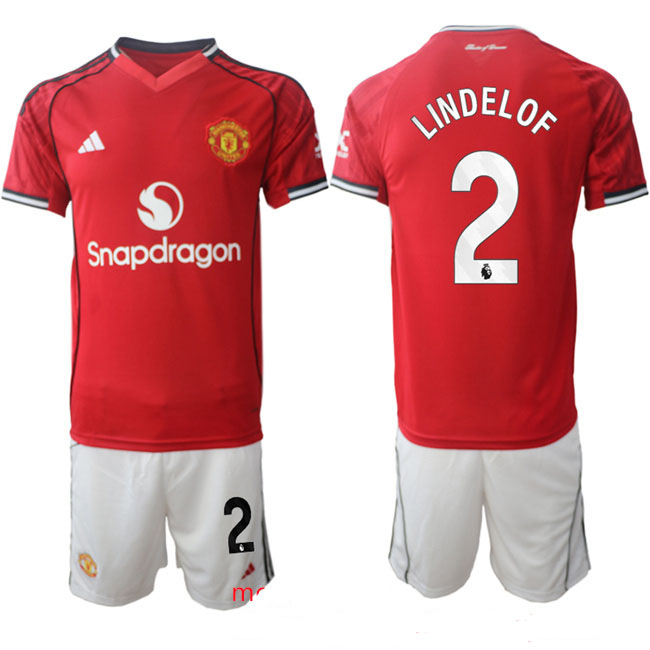 Men’s Manchester United #2 Victor Lindelof 2025 26 Red Home Soccer Jersey Suit