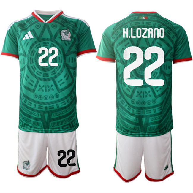 Men’s Mexico #22 Hirving Chucky Lozano Green 2026 World Cup Home Soccer Jersey Suit