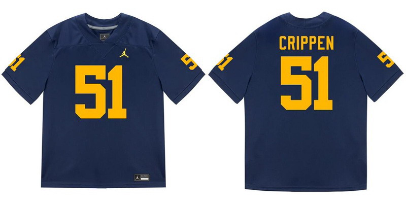 Men’s Michigan Wolverines #51 Greg Crippen Navy Stitched Football Jersey