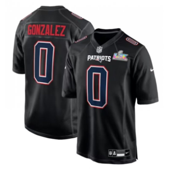 Men’s New England Patriots #0 Christian Gonzalez Black Super Bowl LX Carbon Fashion Jersey
