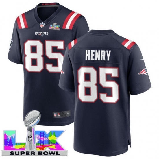Men’s New England Patriots #85 Hunter Henry Blue 2025 2026 Super Bowl LX F U S E Stitched Jersey