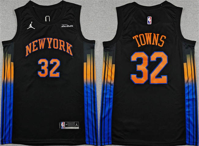 Men’s New Yok Knicks #32 Karl-Anthony Towns Black 2025 26 Statement Edition Stitched Basketball Jersey