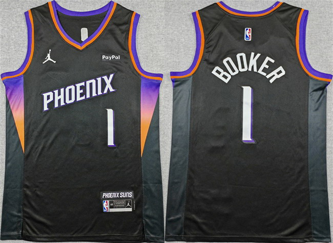 Men’s Phoenix Suns #1 Devin Booker Black 2025-26 Statement Edition Stitched Basketball Jersey