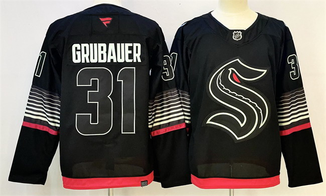 Men’s Seattle Kraken #31 Philipp Grubauer Black 2026 Alternate Stitched Hockey Jersey