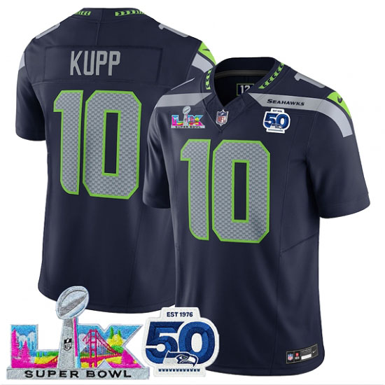 Men’s Seattle Seahawks #10 Cooper Kupp Navy 2025 F.U.S.E. Super Bowl LX And 50th Season Vapor Limited Football Stitched Jersey