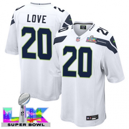 Men’s Seattle Seahawks #20 Julian Love White 2025 2026 Super Bowl LX F U S E Stitched Jersey