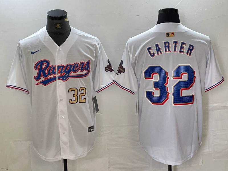 Men’s Texas Rangers #32 Evan Carter White Gold Cool Base Stitched Baseball Jersey