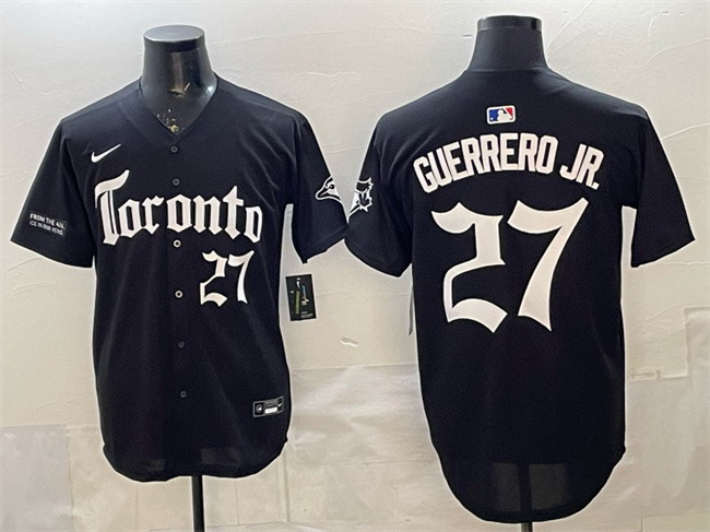 Men’s Toronto Blue Jays #27 Vladimir Guerrero Jr. Black Gothic North Edition Limited Stitched Baseball Jersey