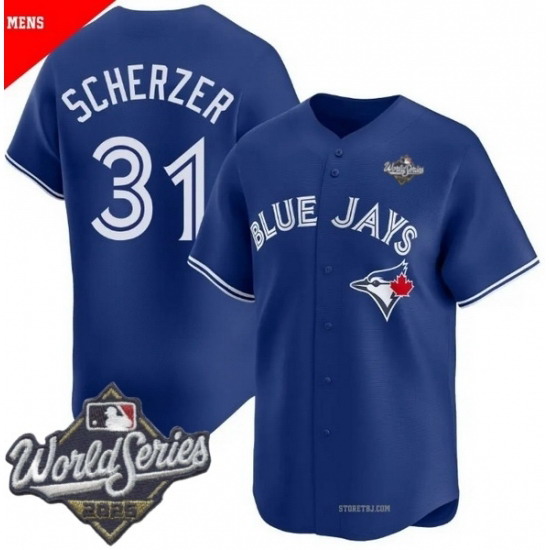 Men’s Toronto Blue Jays #31 Max Scherzer Blue 2025 Home Cool Base Stitched Baseball Jersey