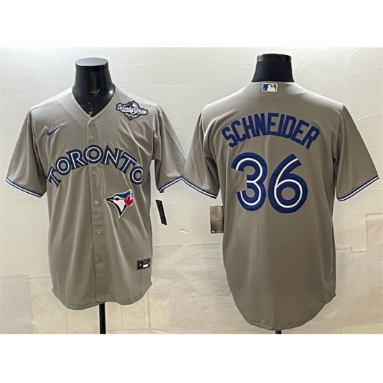 Men’s Toronto Blue Jays #36 Davis Schneider Gray 2025 World Series Cool Base Stitched Baseball Jersey