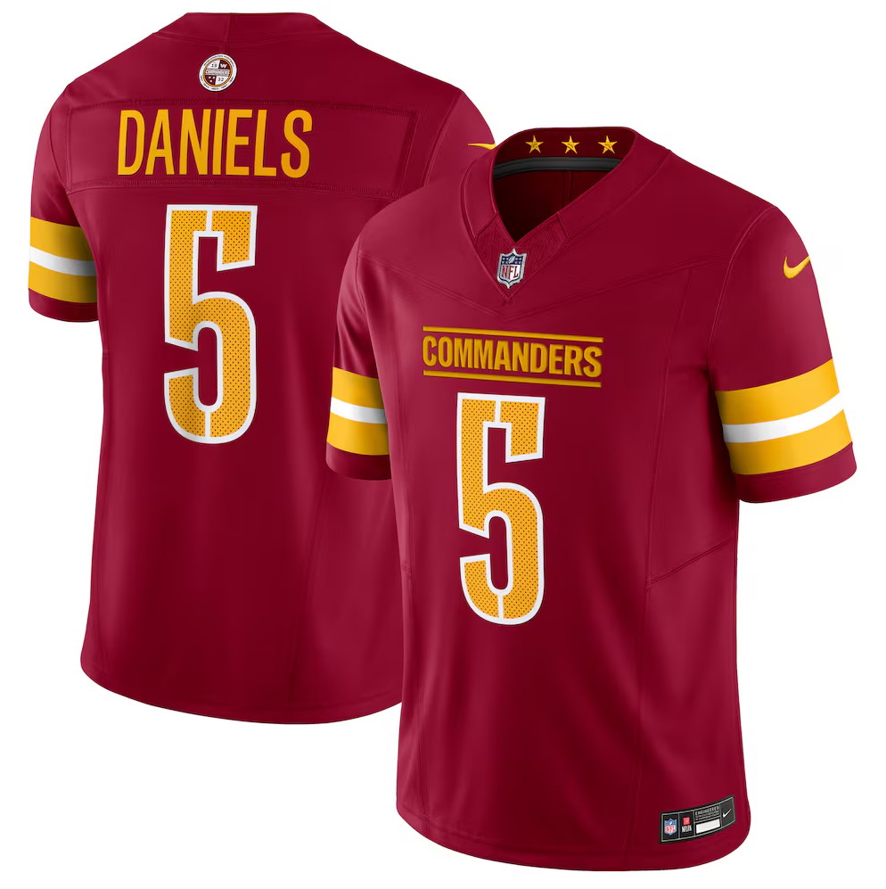 Men’s Washington Commanders #5 Jayden Daniels Burgundy Vapor F.U.S.E. Limited Jersey
