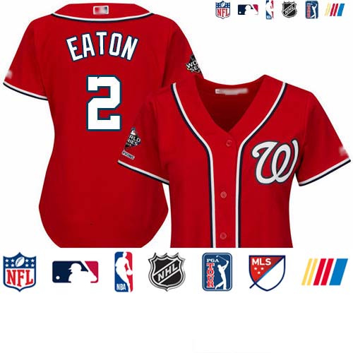 Nationals #2 Adam Eaton Red Alternate 2019 World Series Champions Women’s Stitched Baseball Jersey