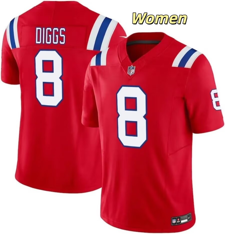Women New England Patriots #8 Stefon Diggs Red 2025 Vapor Limited Jersey