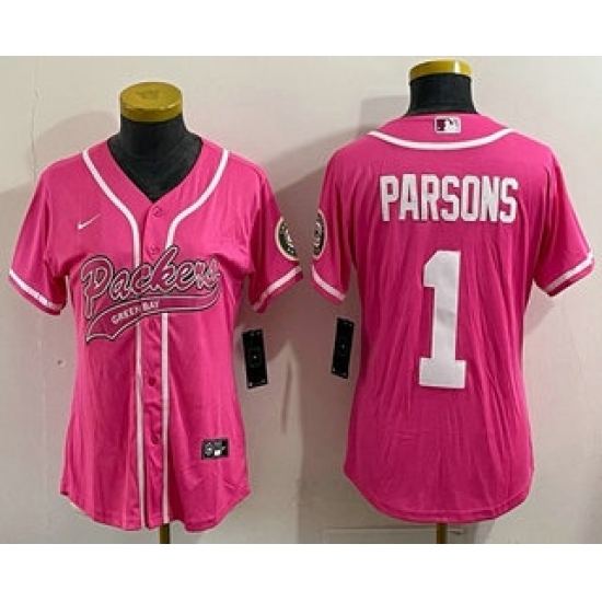 Women’s Green Bay Packers #1 Micah Parsons Pink With Cool Base Stitched Baseball Jersey
