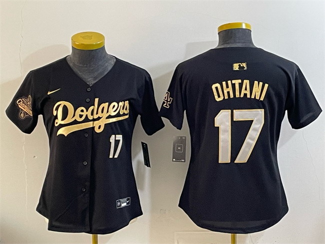Women’s Los Angeles Dodgers #17 Shohei Ohtani Black Gold 2025 World Series Champions Patch Limited Stitched Baseball Jersey(Run Small)
