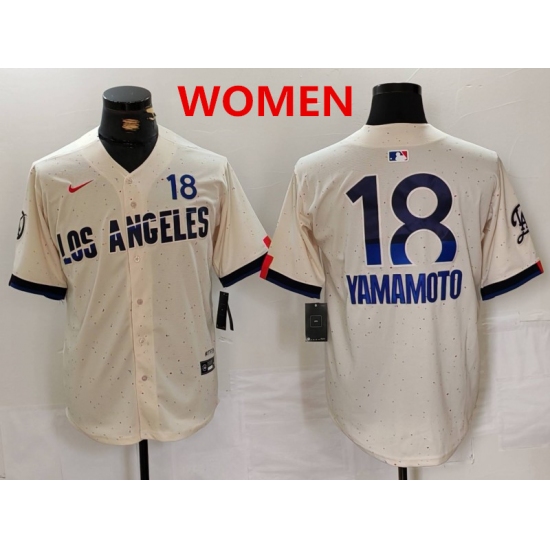 Women’s los angeles dodgers #18 yoshinobu yamamoto cream 2024 city connect limited jersey