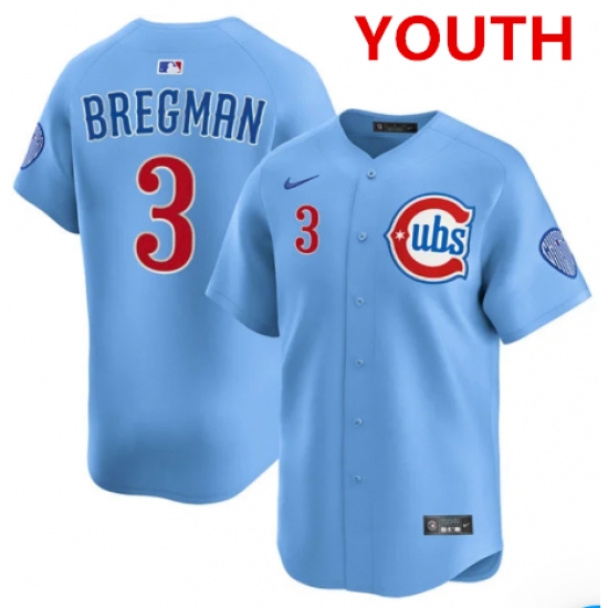 Youth Chicago Cubs #3 Alex Bregman light Blue alternate limited jersey