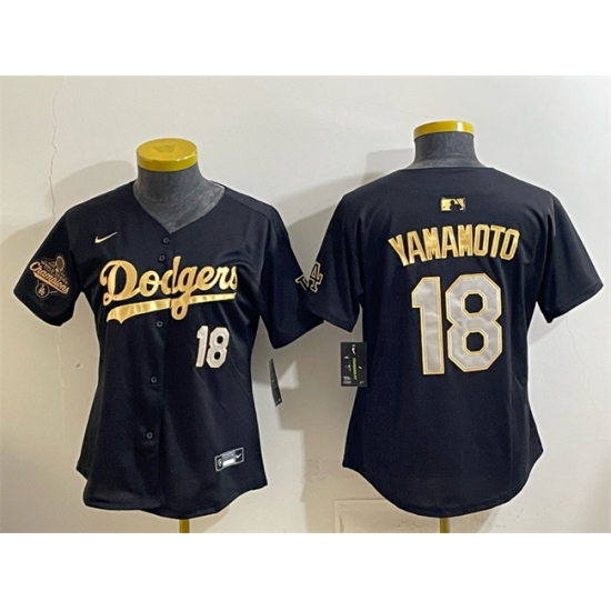 Youth Los Angeles Dodgers #18 Yoshinobu Yamamoto Black Gold 2025 World Series Champions Limited Stitched Baseball Jersey