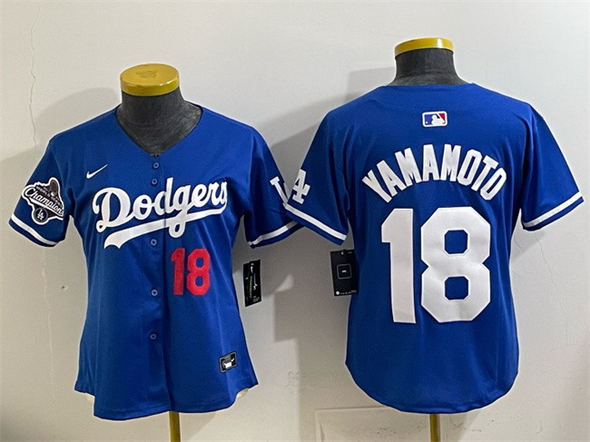Youth Los Angeles Dodgers #18 Yoshinobu Yamamoto Royal 2025 World Series Champions Patch Limited Stitched Baseball Jersey
